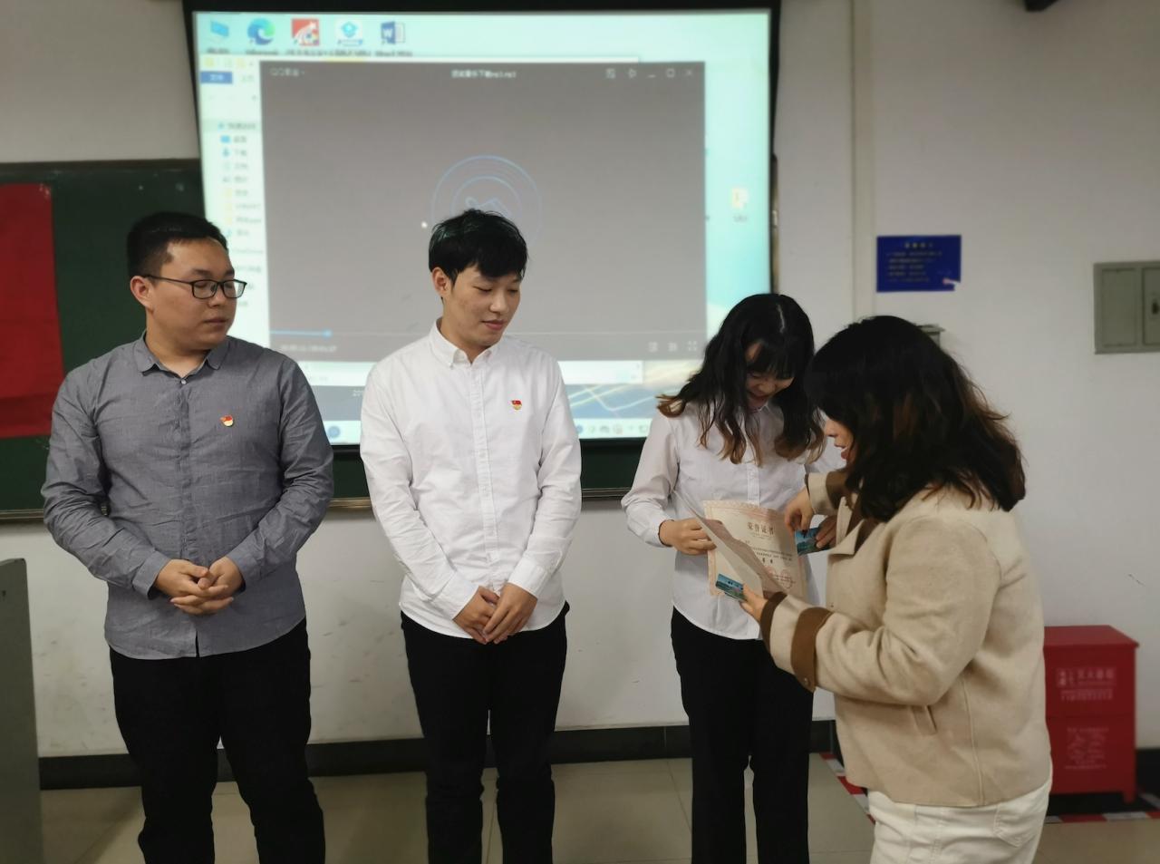 图三 倪晗同志为获奖者颁奖