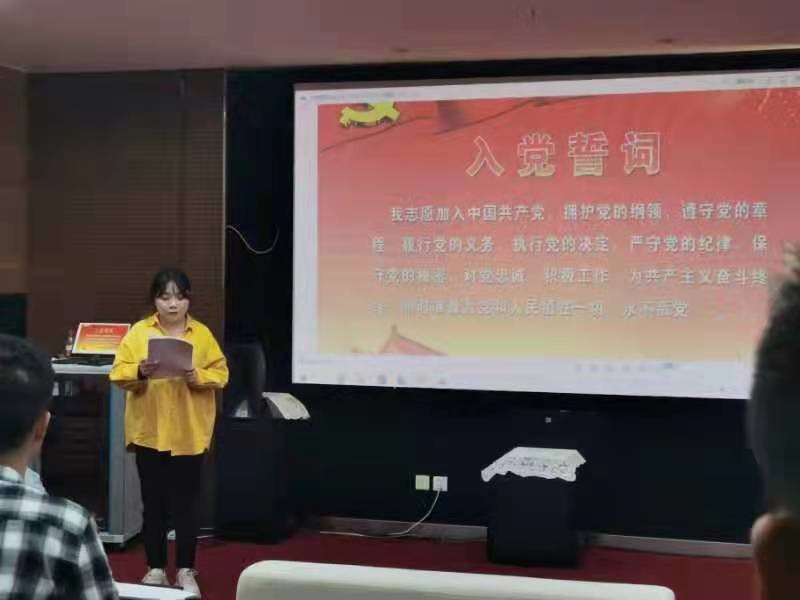 会议开始,杨子睿同志介绍本次会议的主要工作内容:一是预备党员宣誓,正式党员重温入党誓词;二是支部书记代表支委会做述职报告;三是党员档案核查工作总结。