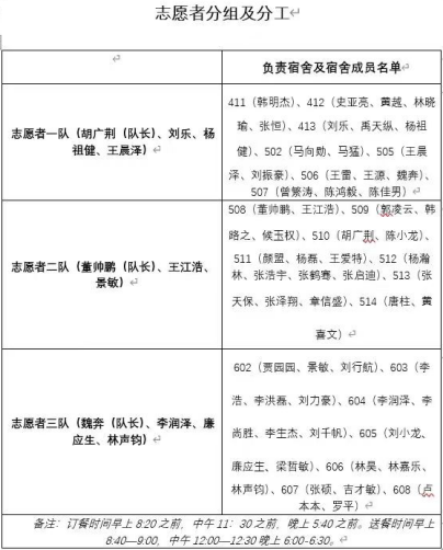 本次活动共号召了3名学生党员和8名入党积极分子组建了三个送餐志愿小分队负责为同学们送餐,负责了学院在南区宿舍生活的19间宿舍共58名同学的用餐问题。活动中,党员和入党积极分子们辛勤劳动,与同学们积极沟通,认真了解同学们不同的就餐需求,圆满地完成了本次活动。