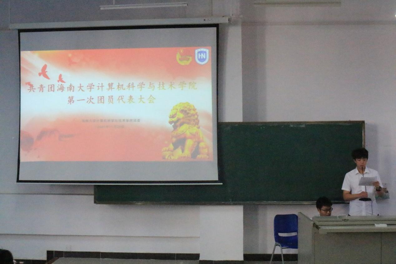 会议伊始,全体起立,奏唱国歌。刘士铭同学宣读大会议程,并宣布本次团员代表大会正式开始。