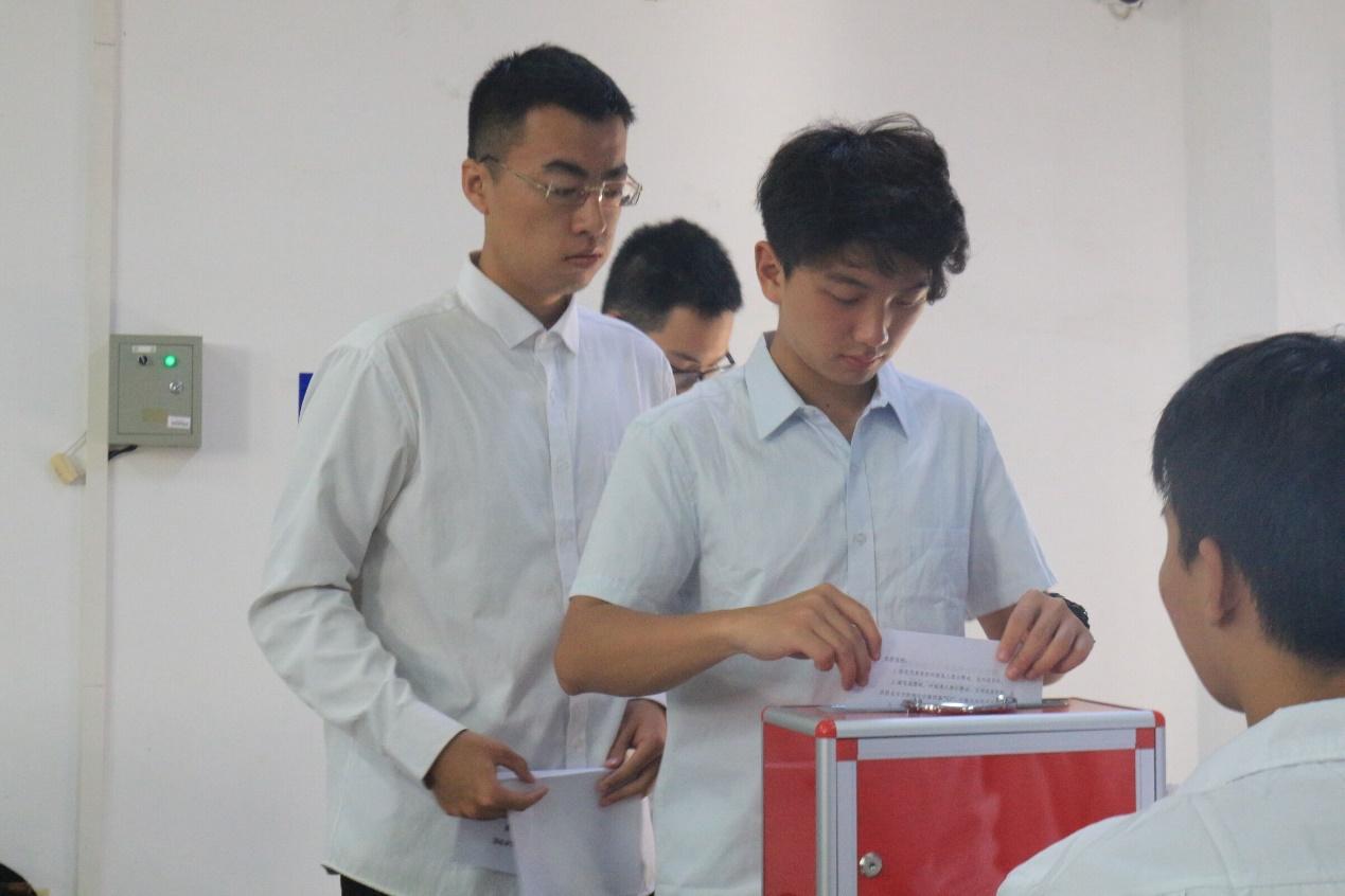 大会第六项,澳门十大信誉网赌大全各班优秀团员代表认真填写选票,并在监票人的监督下将选票有序投入选票箱中。