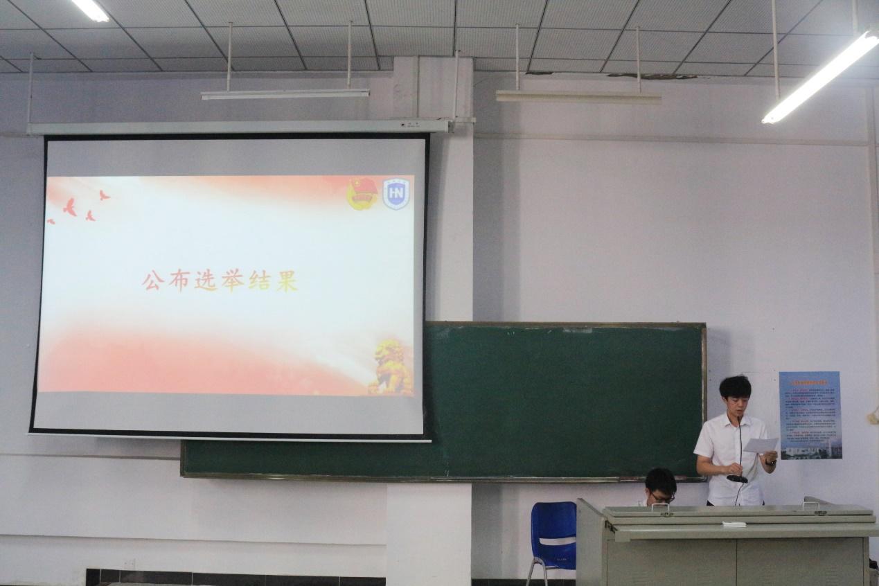 大会第七项,公布选举结果。经过计票人的细致统计,刘士铭公布第一届团委委员名单为万隽、李盈莹、苏蕊、汪前方、张垚、徐晨星、郭君捷。