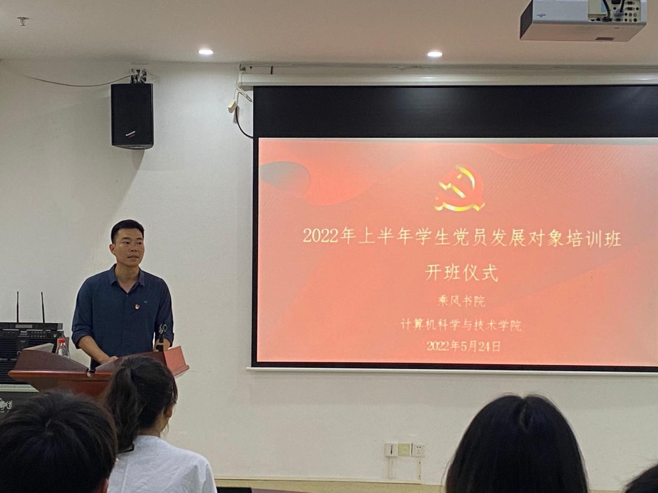 为贯彻落实党员发展细则,提高党员发展对象的理论知识水平和党性修养,澳门十大信誉网赌大全于5月24日下午三点在图书馆504举行2022年上半年学生党员发展对象培训开班仪式。学院党委副书记王红英、乘风书院党委副书记黄小欧、各支部书记、全体学生党员发展对象参加培训班开班仪式,仪式由乘风书院党委副书记黄小欧老师主持。