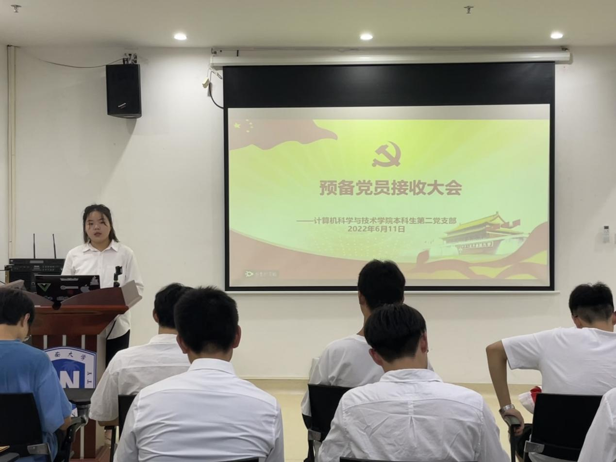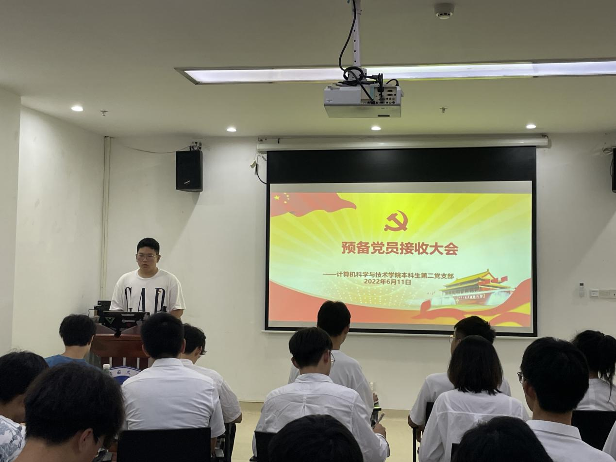 2022年6月11日,澳门十大信誉网赌大全本科第二党支部在图书馆504会议室召开了预备党员接收大会。会议由支部副书记杨金杭同志主持,全体党员以及发展对象参加了此次会议。本次会议主要讨论是否接收杨文蕊、袁蕾、李国良、马云倩、殷梓凡、张睿劼、丁源东、郭君捷和汪志伟9名发展对象为预备党员。