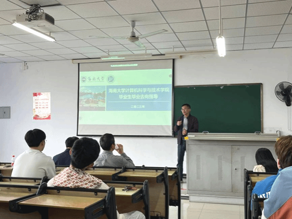 会议最后,刘宇欢老师分别强调了假期管理、实习实践以及网络安全等方面的注意事项,对毕业生开展就业择业方向指导和留琼动员,希望同学们珍惜大学时光,做好未来规划。
