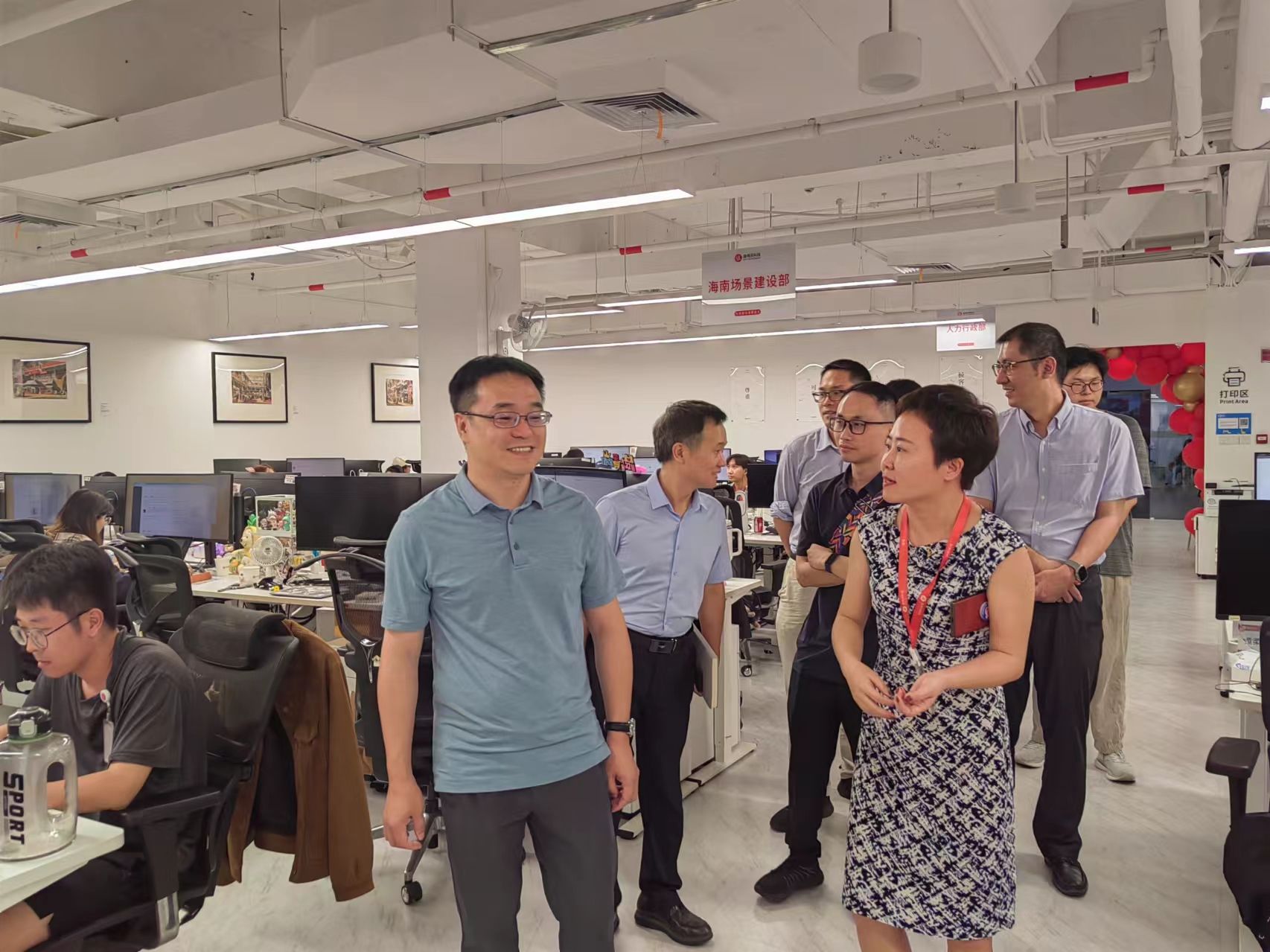 访问团队深入园区实地走访了多家具有代表性的企业。在星宙之形(海南)科技有限公司,访问团队了解了这家专注于虚拟现实与增强现实技术开发的企业的创新成果和市场应用。在海南值选科技有限公司,访问团队与企业深入交流,探讨了大数据与人工智能在电商领域的实际应用和价值。而在邓白氏数据科技有限公司,团队则对企业在数据服务领域的专业能力和市场地位表示了浓厚的兴趣。
