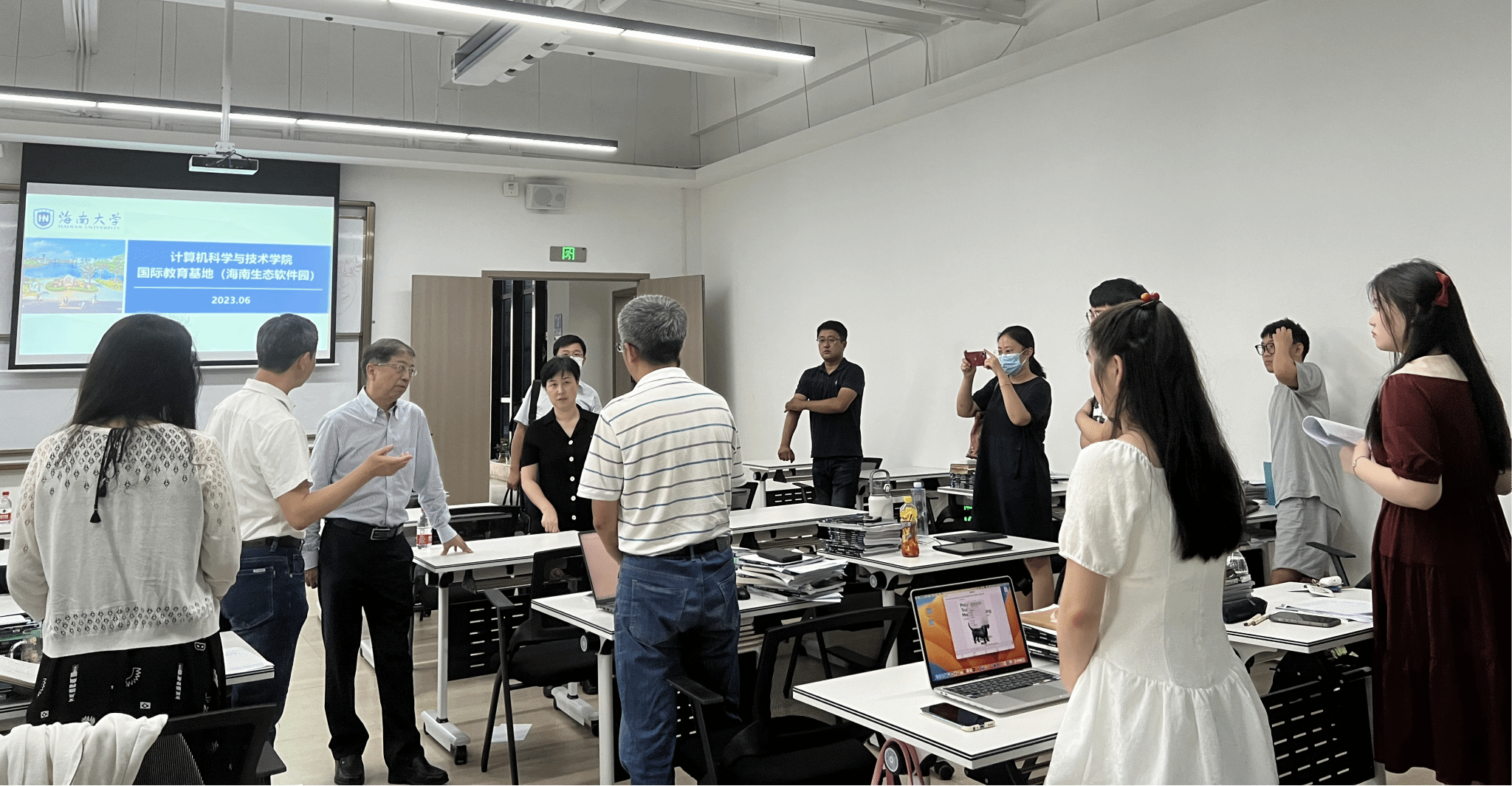 2023年5月5日下午,海南省教育厅一级巡视员黎岳南、海南省教育厅高教处处长王丽娜、海南省教育厅高教处三级主任科员李思润、海南省教育厅高教处挂职干部汪源等一行人赴海南省生态软件园澳门信誉最好十大平台澳门十大信誉网赌大全国际教育基地调研。