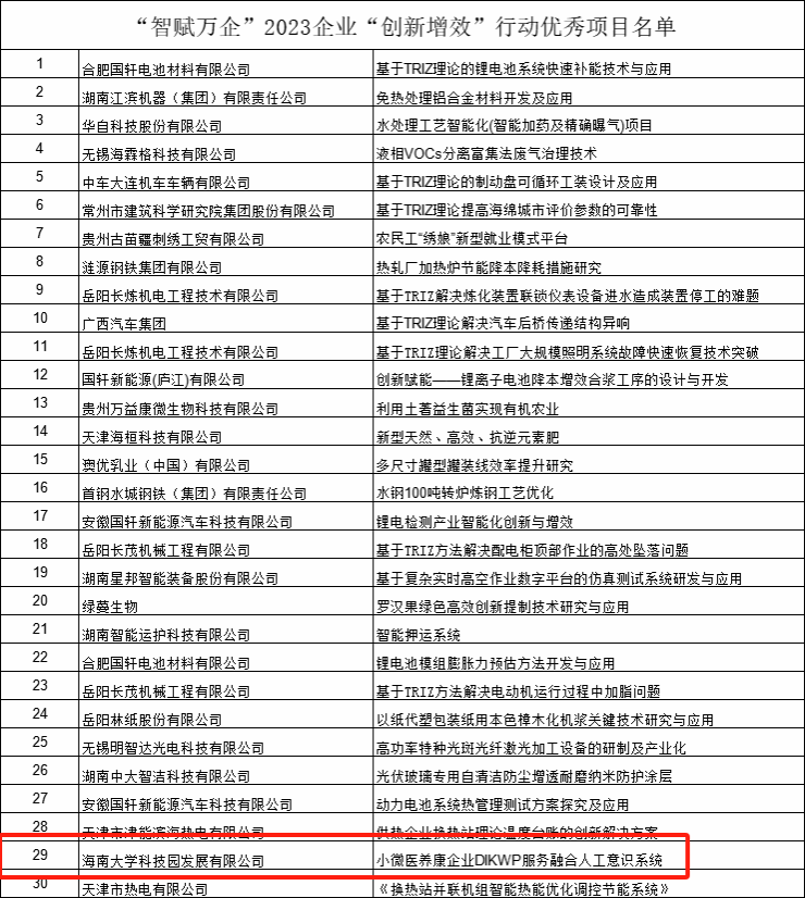 2023“智赋万企”首届全国企业创新增效大赛优秀项目名单公示
