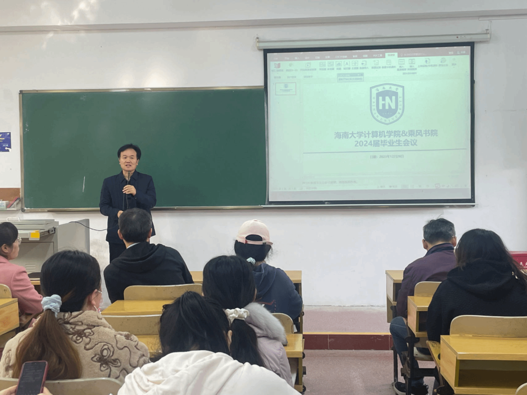 随后,刘华中副院长、程仁杰副院长分别从毕业生教学管理、毕业就业、升学等事项做出明确要求,强调同学们务必在达到毕业要求的前提下,明确自身的职业规划,树立“先就业再择业”的求职观,并明确学院将从升学辅导、就业企业资源、学院科研助理岗等多方面为毕业生提供帮助及支持;