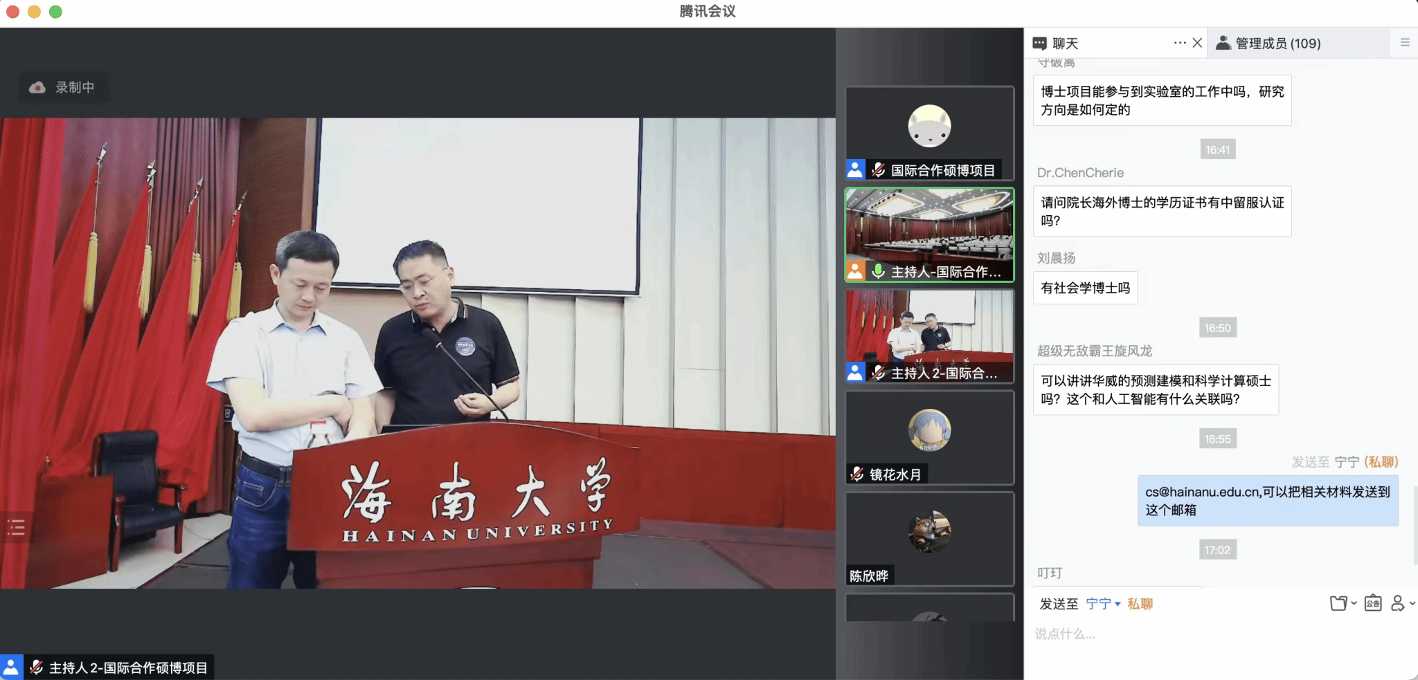 会上,刘华中对计算机学院国际合作硕博项目作了详细介绍,并播放了来自海外院校的祝福致辞。