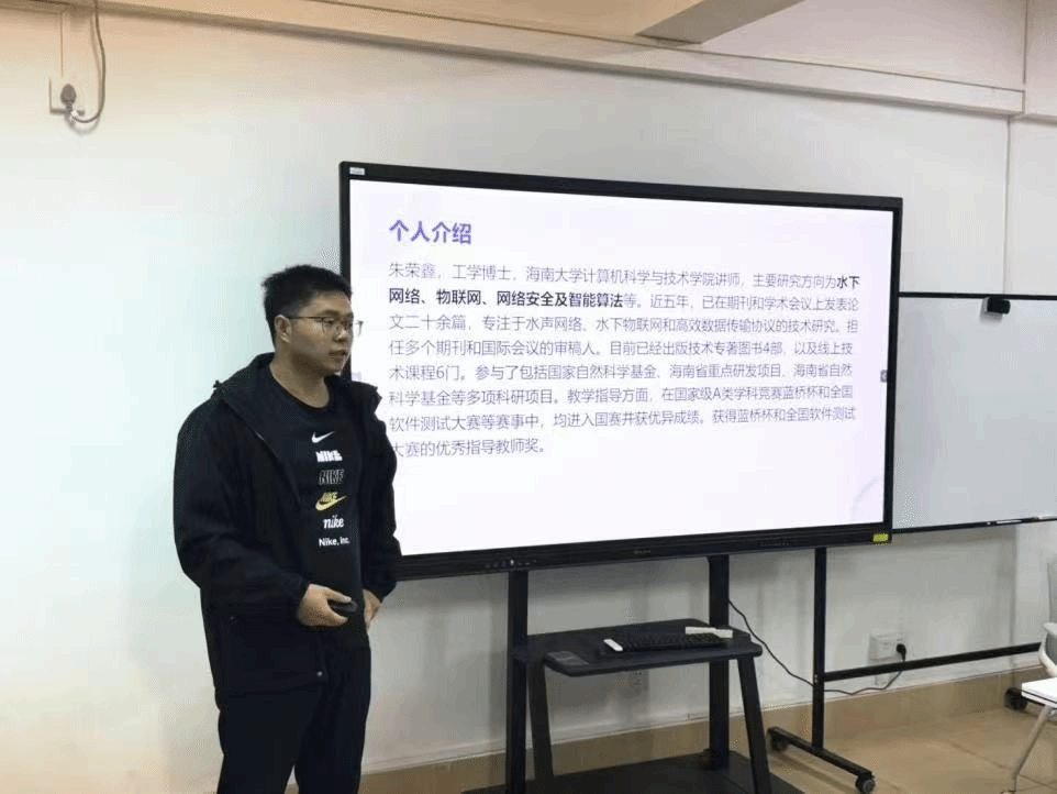 朱荣鑫介绍了水下传感网络的构建及功能,为同学们打开了水下网络研究的大门,通过分享其在海洋监测等方面的具体实践,让大家了解了水下网络安全的必要性。