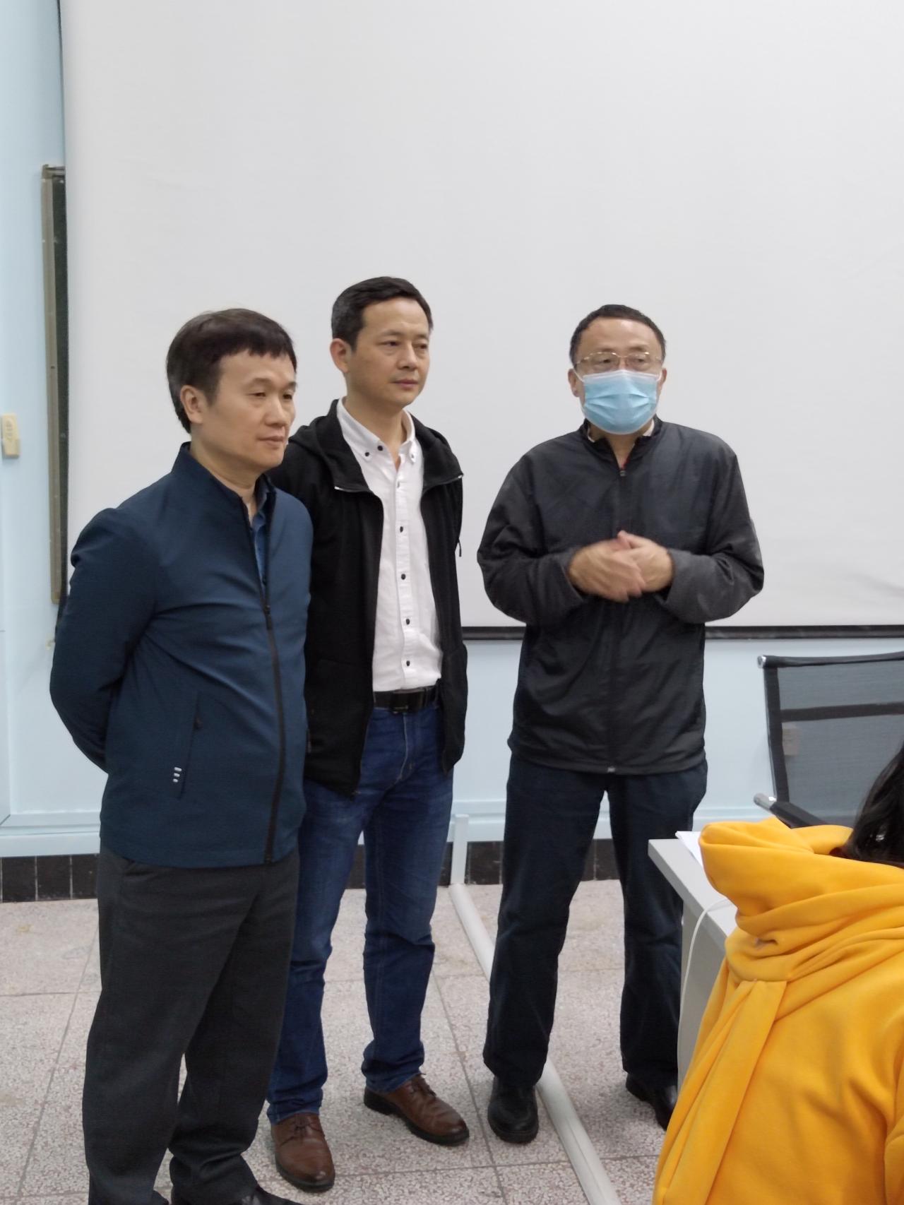 图3:学院教学副院长刘华中(左一)、实验室建设副院长程杰仁(中间)在专业实验教学检查现场3