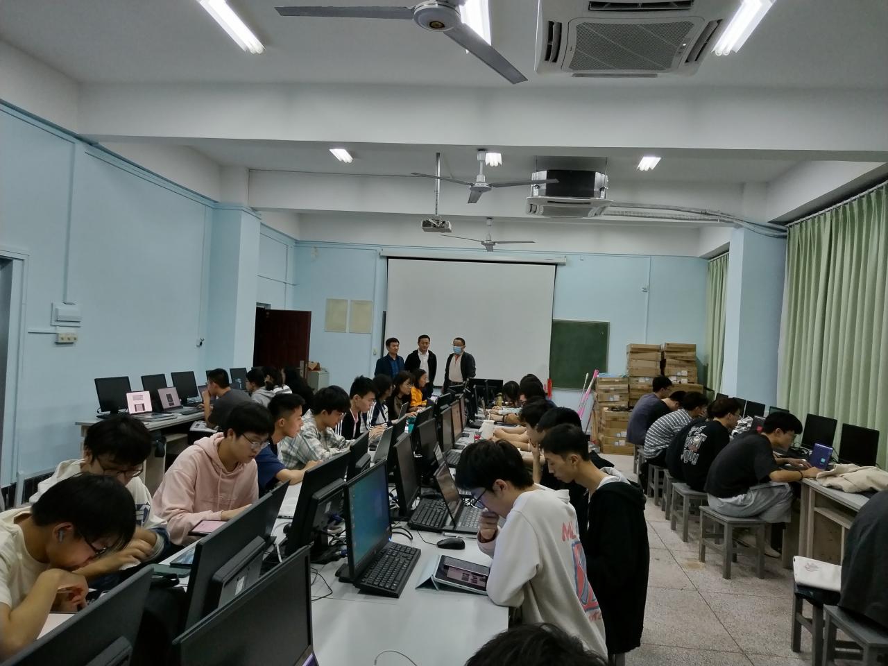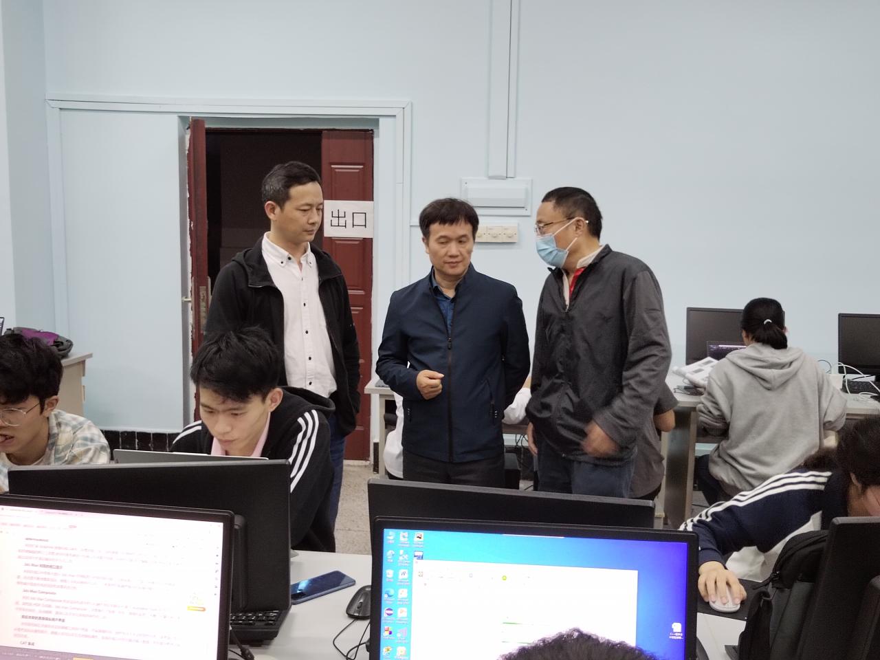 图2:学院教学副院长刘华中(中间)、实验室建设副院长程杰仁(左一)在专业实验教学检查现场2
