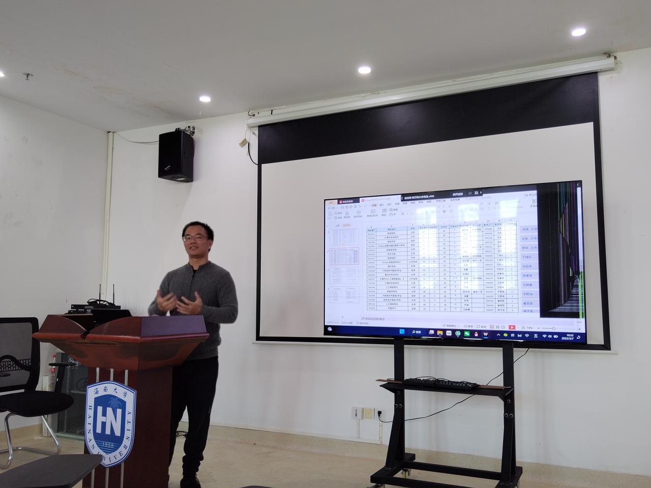 会上,周辉副教授介绍了学院教师的职业发展,新进教师“传帮带”模式即一对一安排一名资深教师,并强调了新进教师融入课程团队的重要性,进行教学工作指导并传授教学经验,深化了新进教师专业建设意识。会上,教学委员会主任李怀成传授了课程教学经验,传授优秀课堂教学的方法,并详细介绍了课程团队构成。